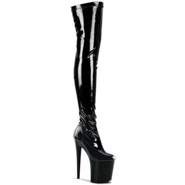 Bota Flamingo Alta hasta el muslo tacón de 20 cm y plataforma de 10cm, con cierre lateral y cintas en la parte trasera.