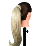 Postizo de cabello sintetico, manejable al calor, fácil colocación con velcro y peineta, largo aproximado de 46 cm.