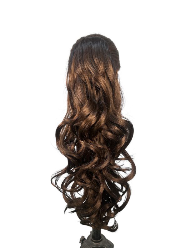 Postizo de cabello sintetico, con un largo aproximado de 65 cm, manejable a temperaturas de hasta 150° grados con herramientas de cerámica.