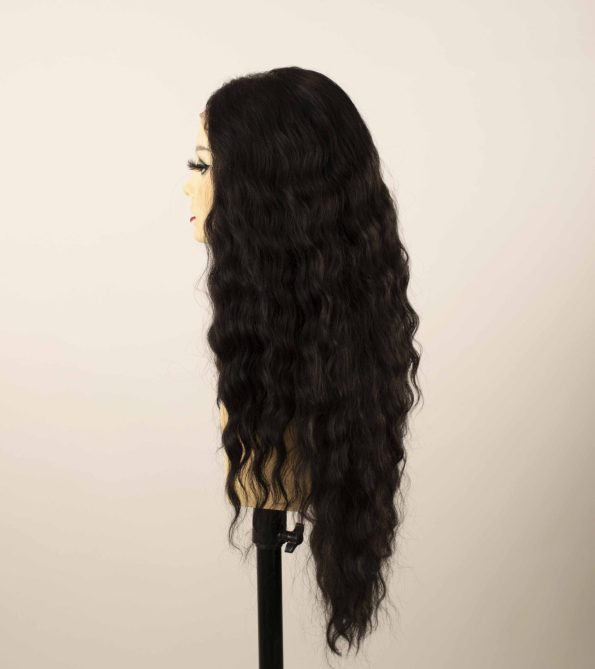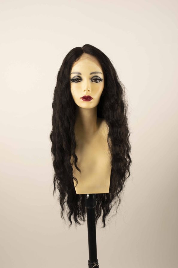Peluca Athena de cabello sintetico largo de 36″ pulgadas de largo de raíz a punta.