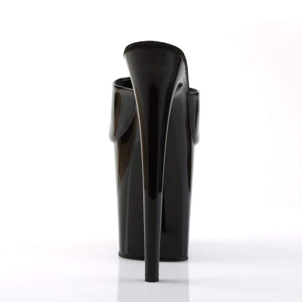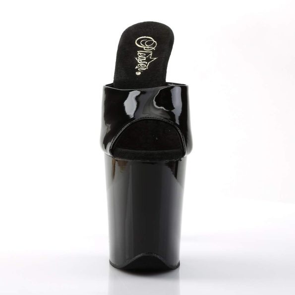 Zapatilla de Pol Dance con 20 cm de tacón, 10 cm de plataforma sin sujetador de tobillo, con terminado de charol en el empeine.
